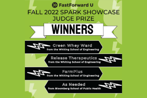 FastForward U’s Spark Showcase was held as a live Zoom event on Dec. 9, and featured 46 student teams from across all Johns Hopkins campuses. The record number of teams participated in the early-stage startup accelerator to turn their ideas into ventures. Award-winning teams received prizes totaling over $10,000.